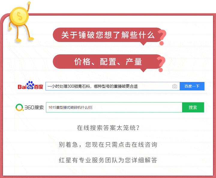 大家若是想具體了解1615重型錘式破碎機的價格,可選擇在線咨詢 的方式,我們的客服人員具備一定的專業(yè)設備知識,在為您進行準確報價的同時,還可提供一些合適的方案或者建議供您參考。